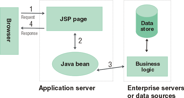 JSP는 절차적언어 → 재사용이 안된다. = model1