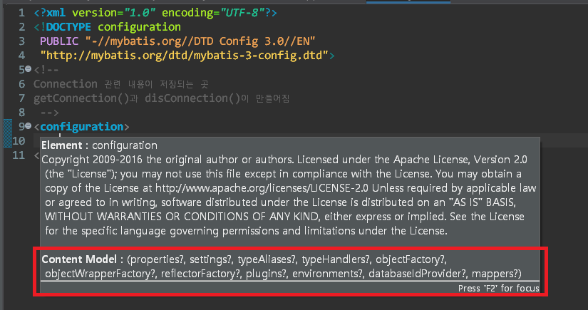 xml파일에 이걸 추가해 주면 MyBatis가 제공하는 태그들을 다 볼 수 있도록 해준다.