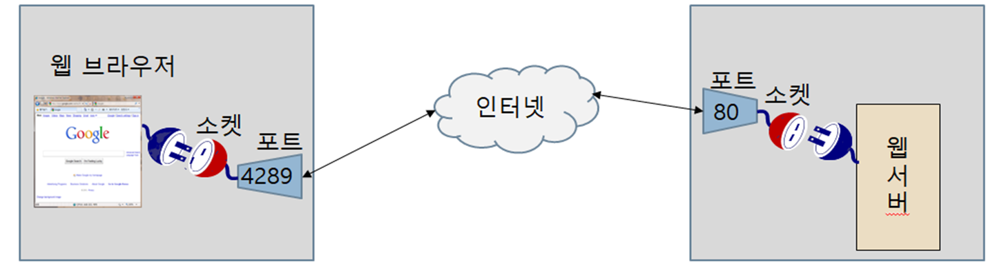 (이 때 포트넘버는 0번부터 65535번까지 있으며 응용 프로그램별로 주로 쓰이는 번호가 정해져 있다.)