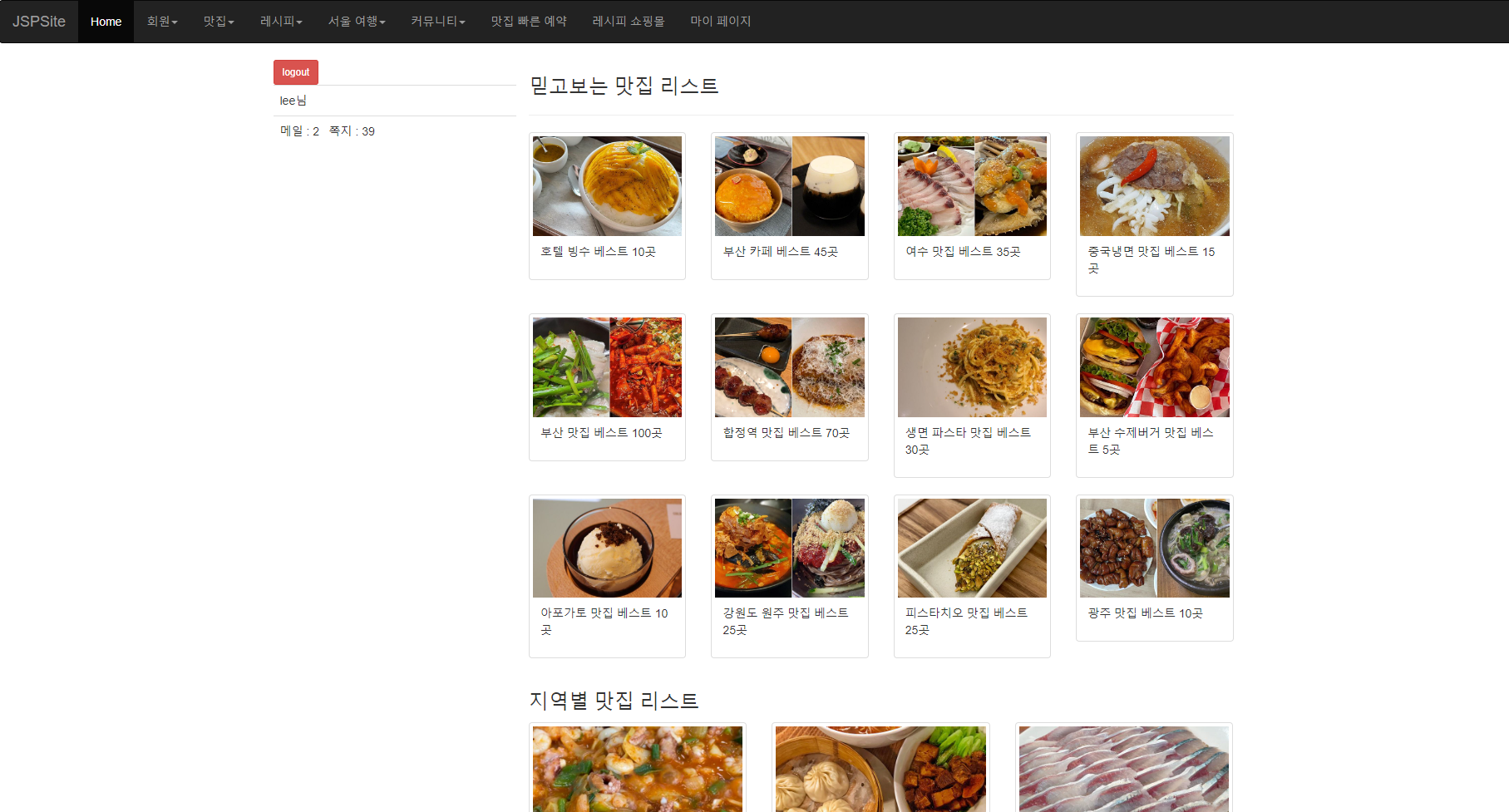 <h3>지역별 맛집 리스트</h3>