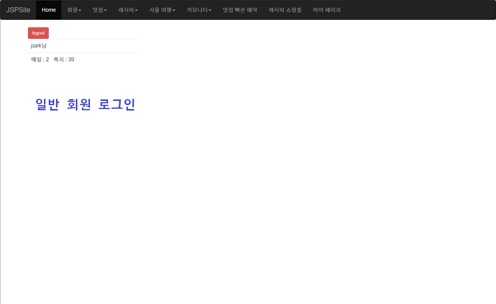 로그인 이후 화면을 logout.jsp에 구현한다. (로그아웃 버튼이 있기 때문에 이름이 logout)
